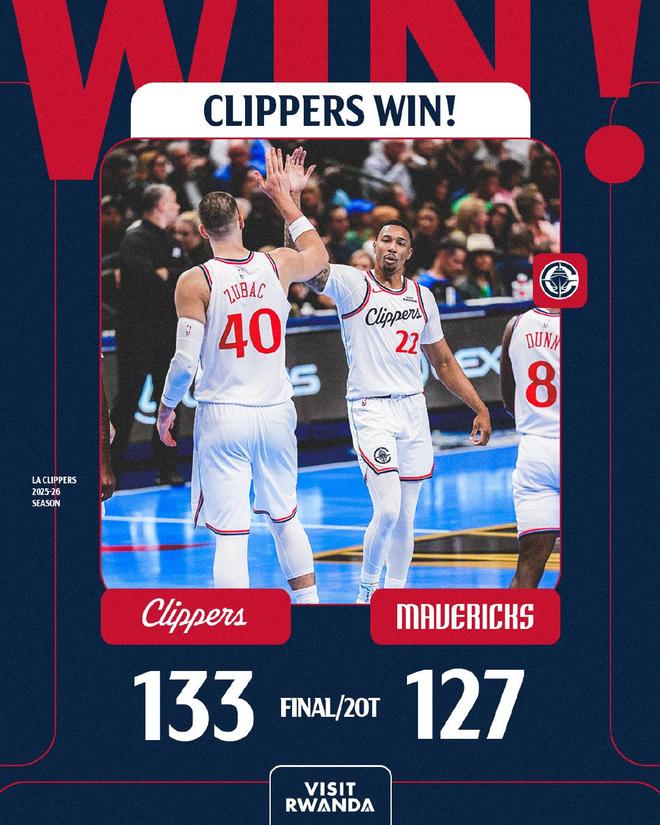 加时赛里,两队继续缠斗,祖巴茨与弗拉格在禁区对轰,哈登连中远投,帮助快船取得领先。弗拉格单打命中,达拉斯又一次追平了比分。哈登绝杀球被封盖,两队携手以123平进入第二个加时赛。哈登顶住了压力,轰进关键远投,率队又一次占据场上主动权。达拉斯众将体能透支,连续出现失误和远投不进,快船稳扎稳打,得以收下了比赛。最终,快船以133比127险胜对手。